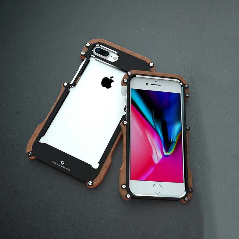 Achat Pour Apple iPhone 8 Housse Coque Etui De Luxe Marque En Métal Dur En Aluminium R just Bois Étui de Téléphone Antichoc pour iPhone 8plus Couverture Funda Pas Cher En Ligne