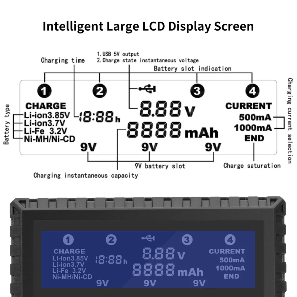 Vente 4 Slots Multi fonction Chargeur De Batterie Li ion Li fe Ni MH Ni cd Chargeur Intelligent pour AA AAA 18650 26650 6F22 16340 9 v Batterie Pas Cher Prix
