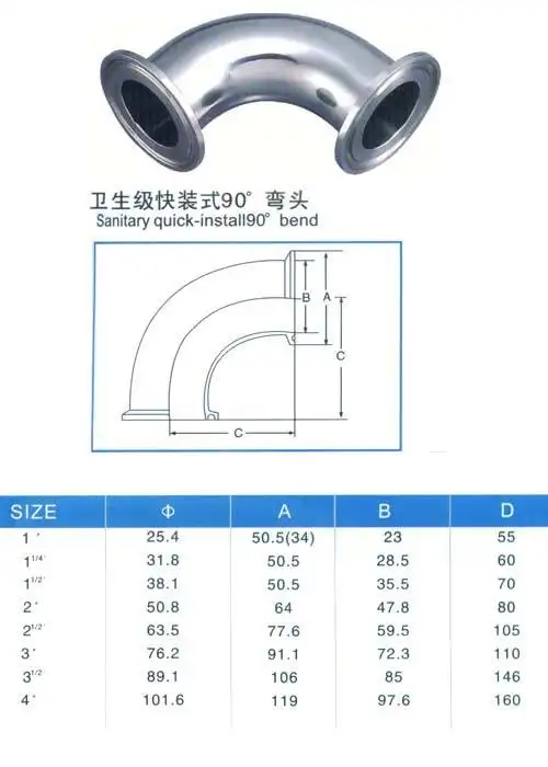 Acheter Meilleur 1 1 2 \"38mm Tuyau O D SUS304 Sanitaire En Acier Inoxydable 1.5\" Tri Clamp 90 Degrés coude Raccord De Tuyau Virole OD. 50.5mm Pas Cher Prix.