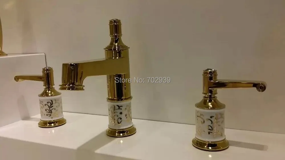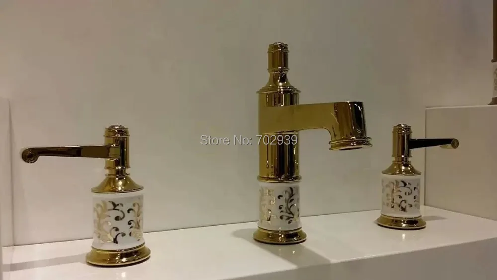 Vente Meilleur Or clour 8 polegada généralisée salle de bains lavabo évier robinet mitigeur navire gratuit en céramique robinet Pas Cher En Ligne.