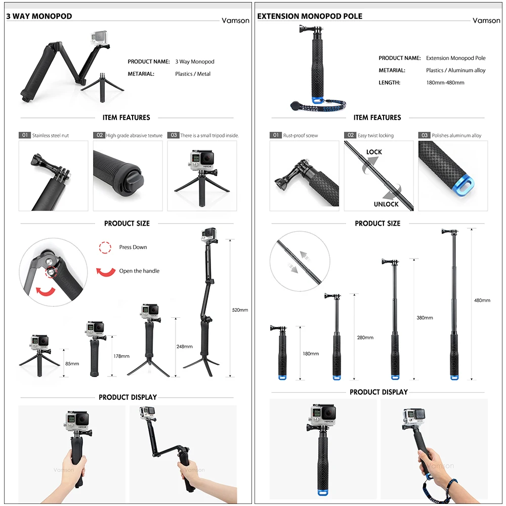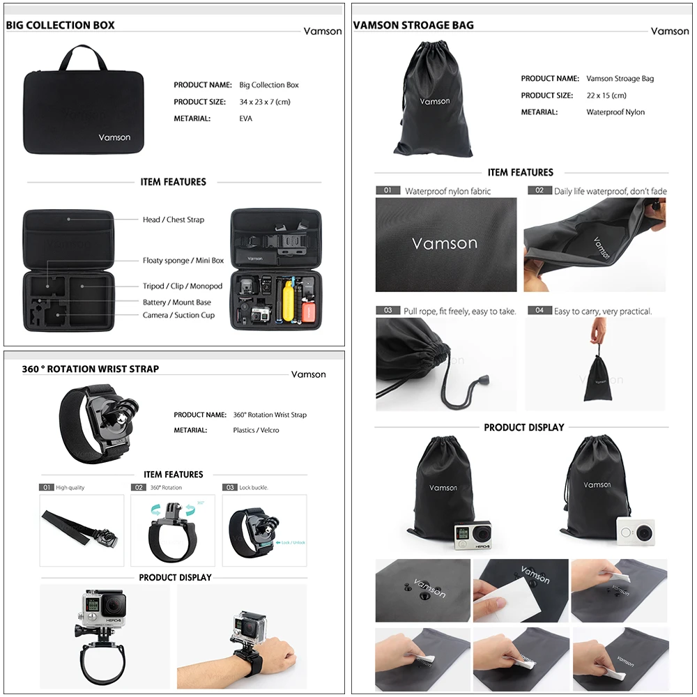 . Acheter Vamson pour Gopro 7 Accessoires kit pour xiaom yi 4 k pour gopro hero 7 6 5 4 3 kit montage pour SJCAM SJ4000 eken h9 trépied VS56 Pas Cher En Ligne.