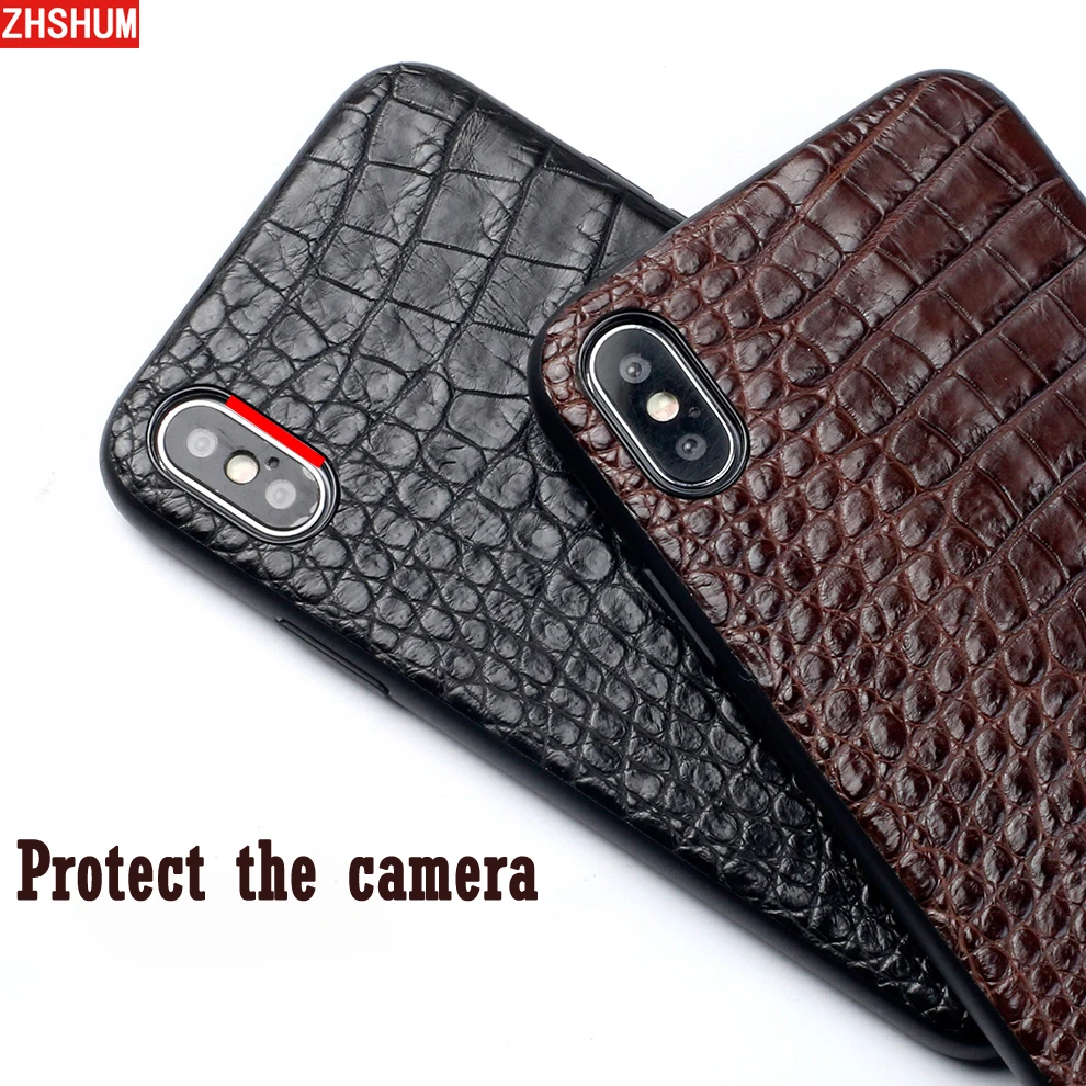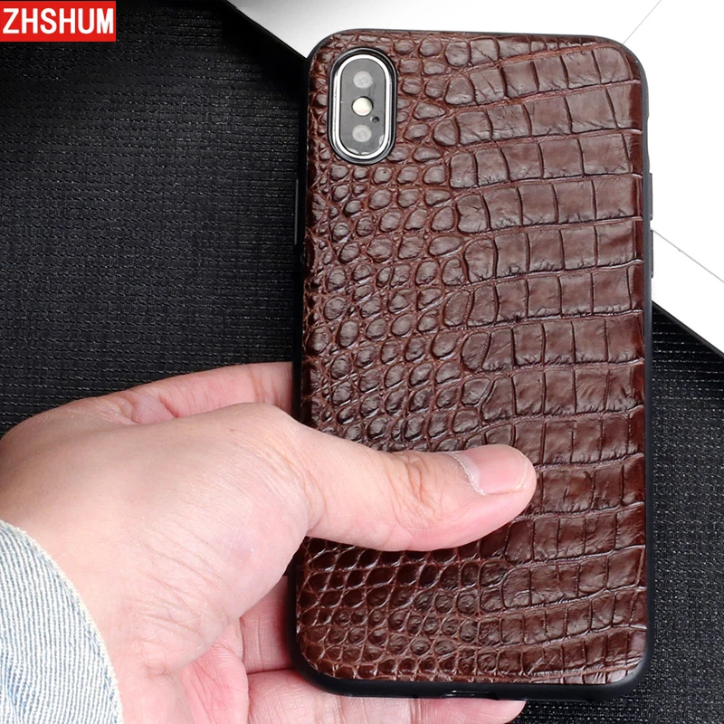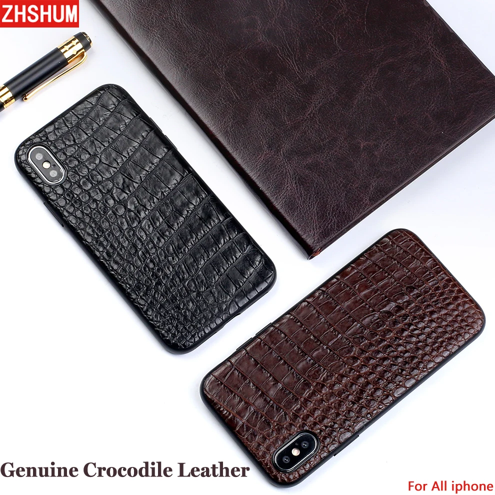 Acheter Véritable Crocodile En Cuir étui pour Iphone X 7 Plus Iphone 8 6 S XS MAX XR De Luxe Main Croco Cas revêtement arrière pour iphone 6 SE Pas Cher Prix