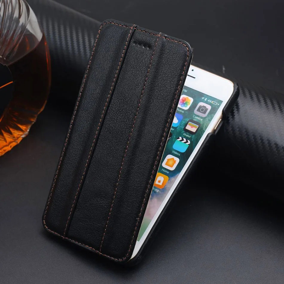 Vente Rétro Véritable Réel Étui En Cuir Pour Apple iPhone 7 8 Plus De Luxe Vertical Flip Phone Housse Pour iPhone 7 8 Capa B89 Pas Cher Prix