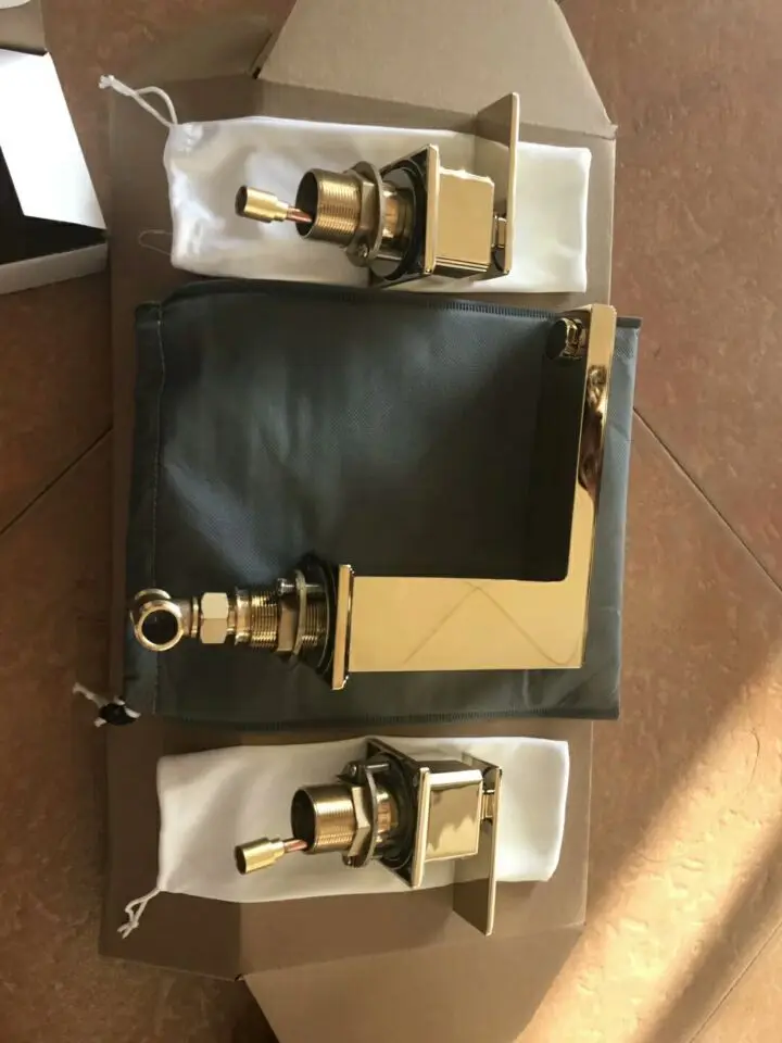 Vente Libérez le bateau TI GOLD PVD 8 pouce 3 Trous généralisée salle de bains lavabo Évier robinet mitigeur pont monté De Luxe robinet carré conception Pas Cher En Ligne