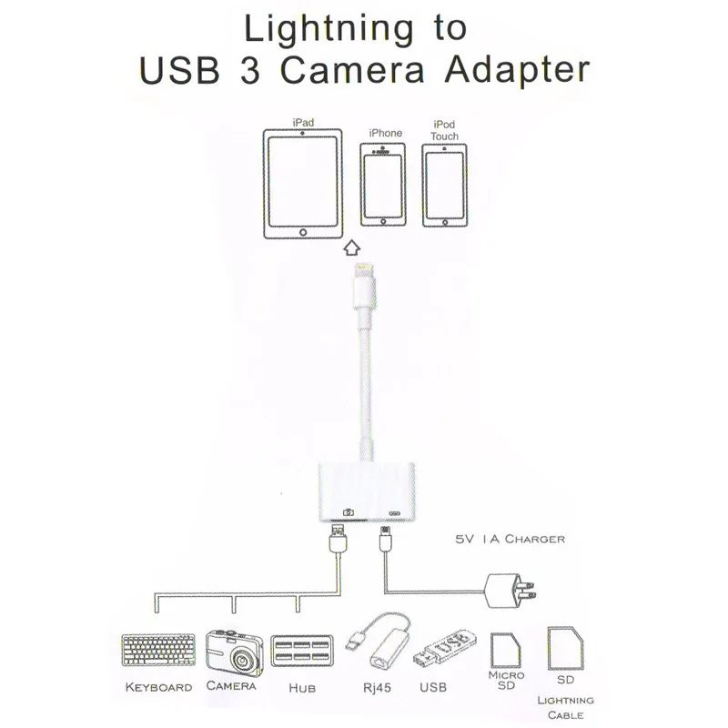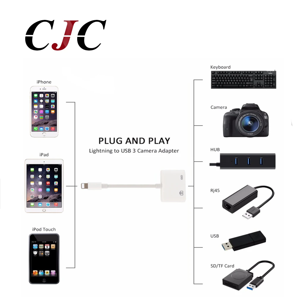 Vente Pour Mini Foudre pour USB 3 Caméra Lecteur Adaptateur pour iPhone X 8 5 5S 6 6 s 7 7 plus pour iPad série Pas Cher En Ligne