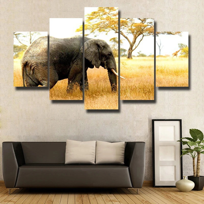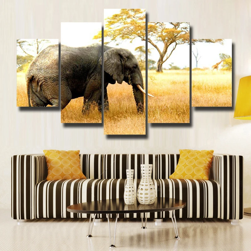 . Achat 5 Pièce Afrique Bébé Éléphant Animal Peinture Avec Jaune Arbre herbe Toile Art Print HD pour L étude Chambre Mur Encadrée peinture Pas Cher En Ligne.