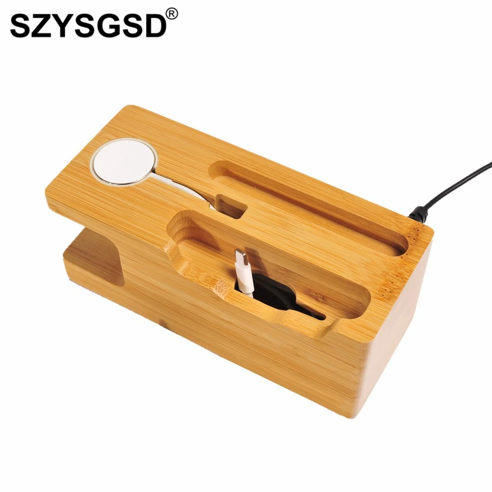Acheter SZYSGSD Bois Bambou stand de chargement Station pour iPhone XS 8 7 7 Plus 6 6 S Plus SE Chargeur USB Pour apple Montre support de bureau Stand Pas Cher Prix