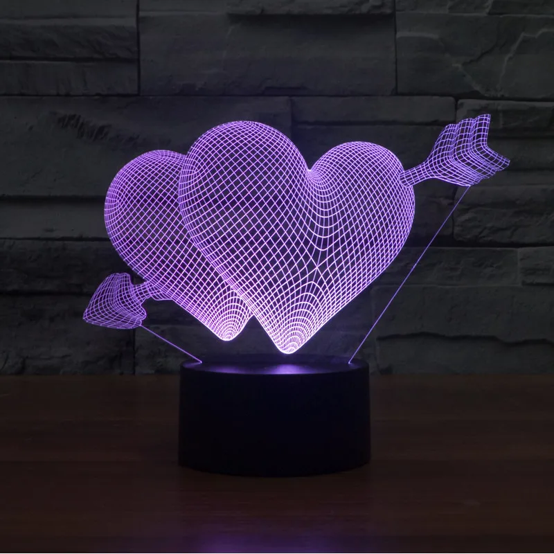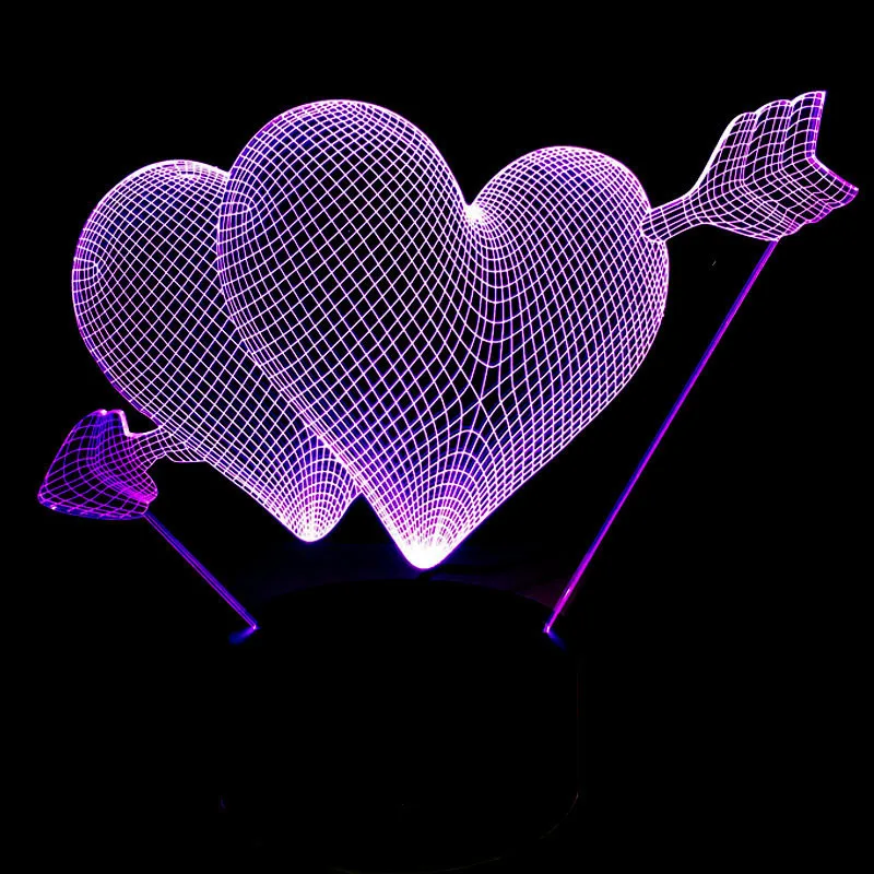 Achat Cadeau pour petite amie 7 Couleur Changement 3D Hologramme Lampe USB Acrylique Lumières anniversaire femme présent cadeau de saint valentin Pas Cher Prix