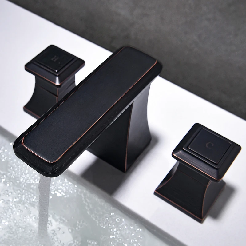 Acheter Meilleur ORB NOIR couleur 8 pouce 3 Trous généralisée salle de bains Lavabo Évier robinet mitigeur pont monté De Luxe robinet carré conception Pas Cher En Ligne.