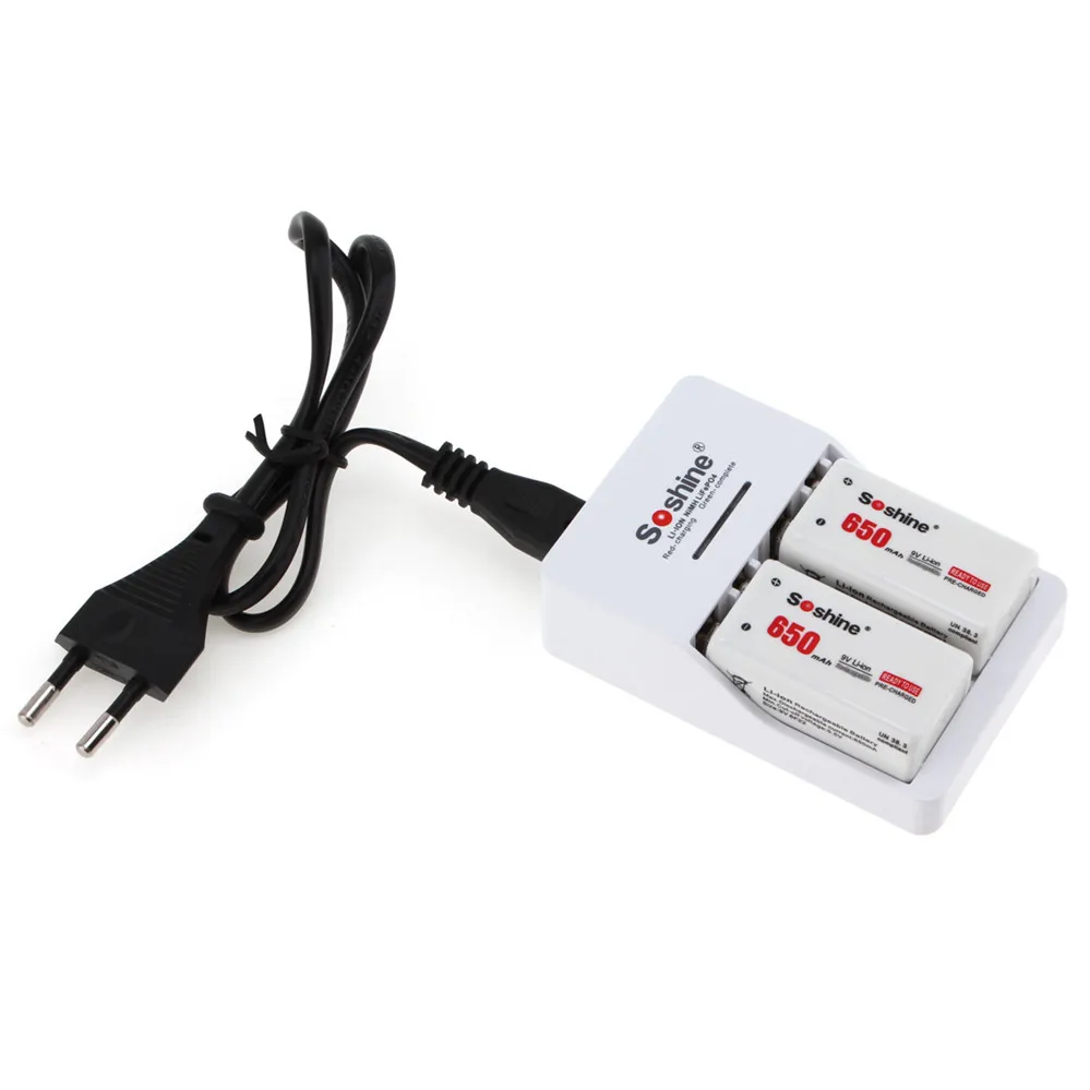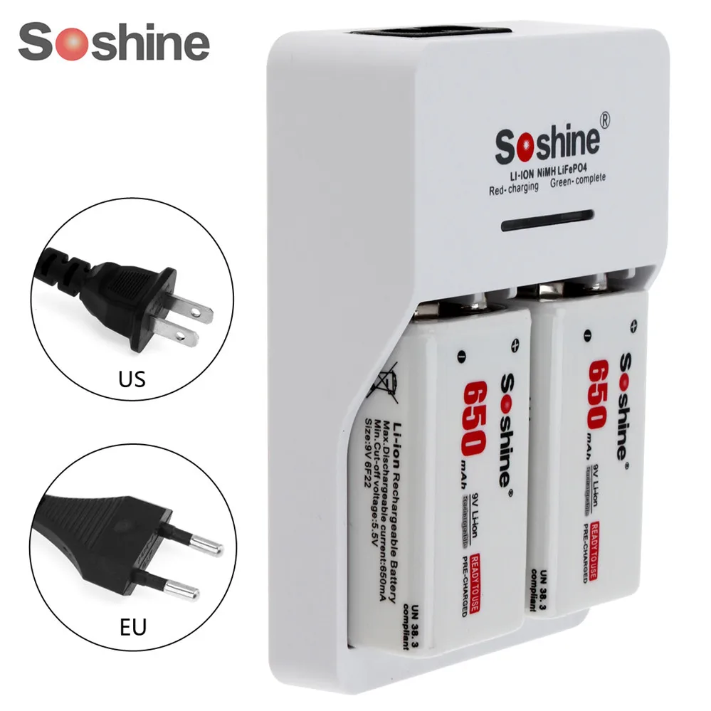 Acheter 2 pcs Soshine 9 v 6F22 Li ion Batterie Rechargeable + 9 v Intelligent Ni MH Batterie Li ion Chargeur UE prise AMÉRICAINE avec Indicateur LED Pas Cher Prix