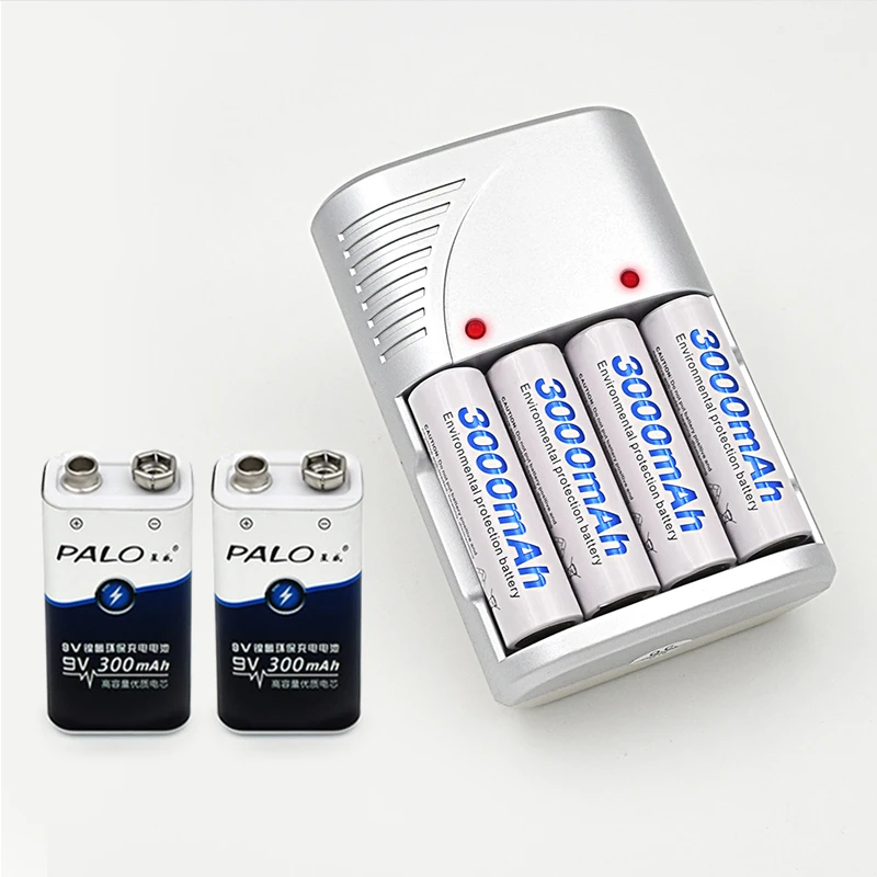 Achat Meilleur 4 Slots led ChargerFor AA AAA 9 V Batteries + 2 pièces 9 v 300 mah Batteries + 4 pièces 3000 mah AA Batteries Pas Cher Prix.