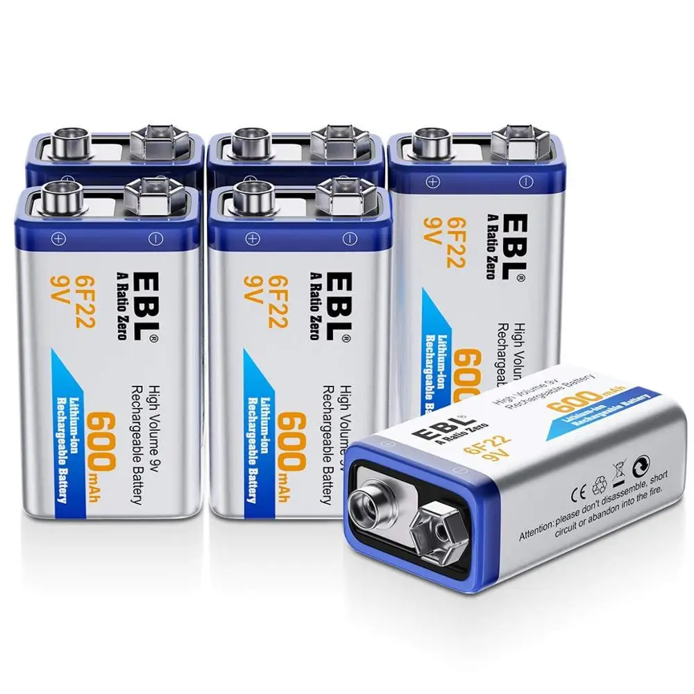 Acheter EBL 9 Volt 600 mAh Li ion Rechargeable 9 V Batteries Au Lithium ion, 6 Pack Pas Cher Prix