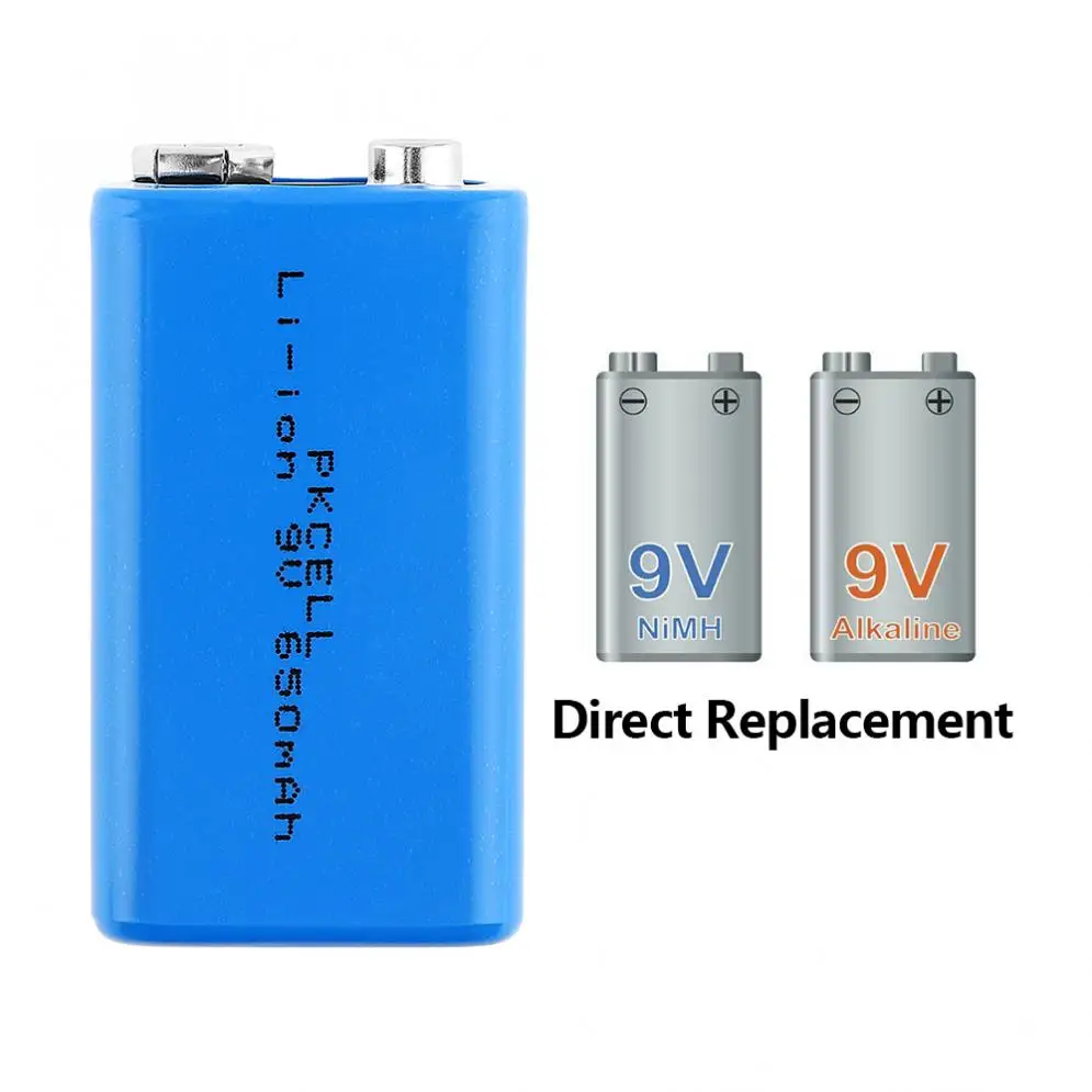 Acheter Pkcell 2 pcs 9 v 6F22 650 mah Batteries Li ion Rechargeable Batterie pour Multimètre Sans Fil Microphone Alarme Pas Cher Prix