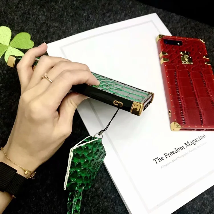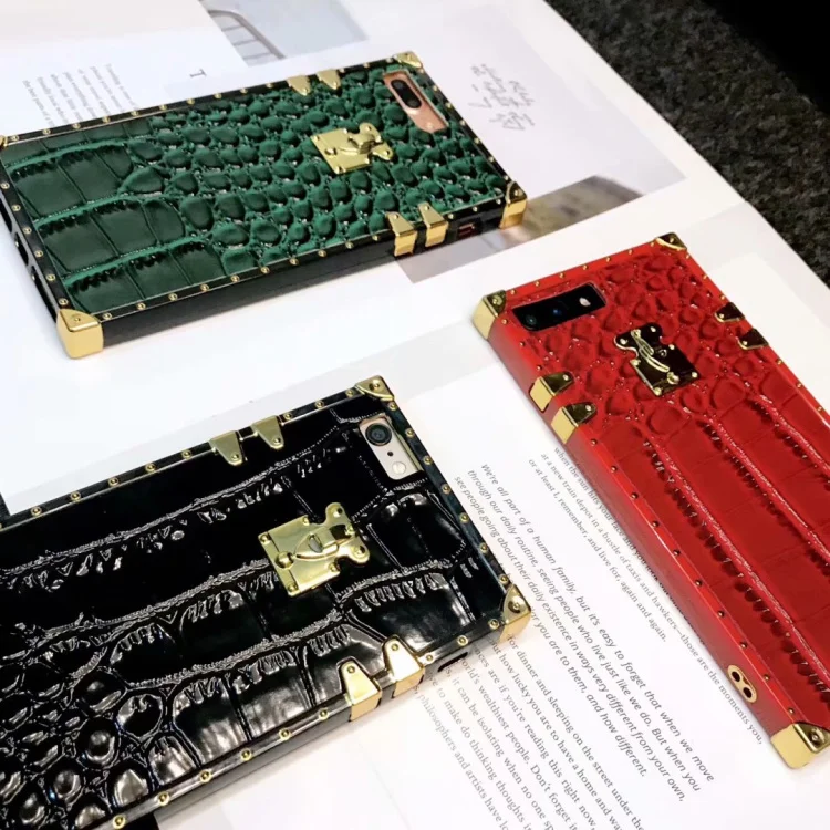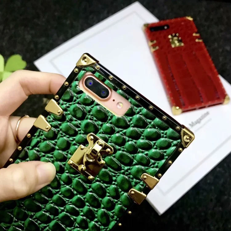 . Achat CKHB 3D mode de luxe marque animal crocodile en cuir carré treillis cas de téléphone pour iPhone 6 6 s 7 8 Plus X XS XR XS MAX shell Pas Cher En Ligne.