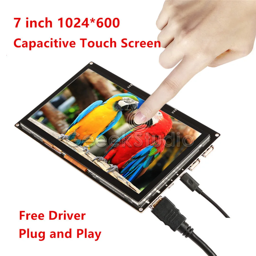 Vente Pilote libre 7 pouce 1024*600 Affichage Écran Tactile Moniteur pour Raspberry Pi Windows PC BeagleBone Noir Plug And jouer Pas Cher Prix