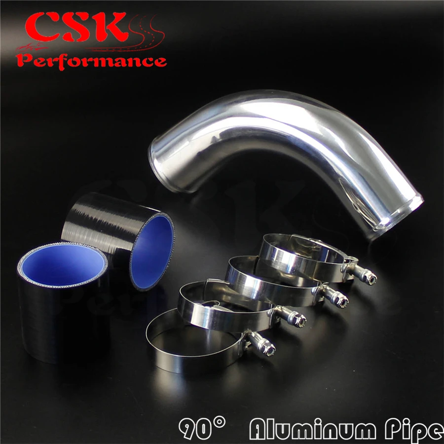 Achat 90 degrés 63mm 2.5 \"Aluminium Turbo Intercooler tuyau + tuyau en silicone + t boulon pinces Pas Cher En Ligne