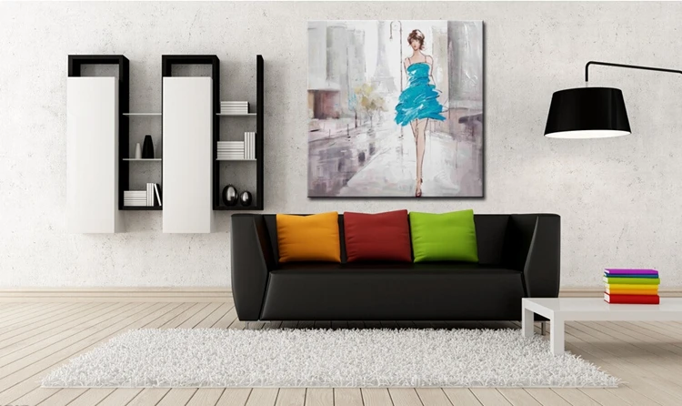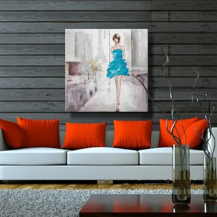Vente Meilleur 100% grande toile à la main peinture à l huile belle fille dans le wall street art photo décoration pour salon non cadre Pas Cher Prix.