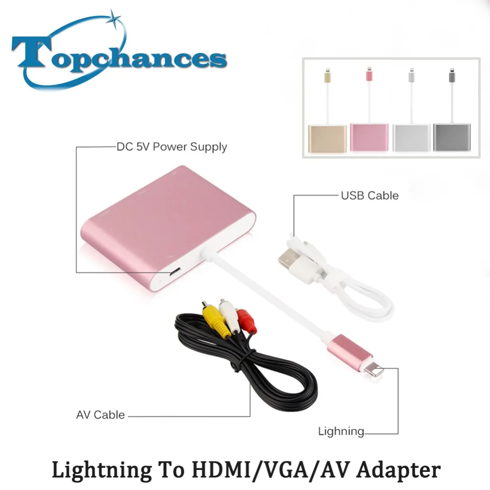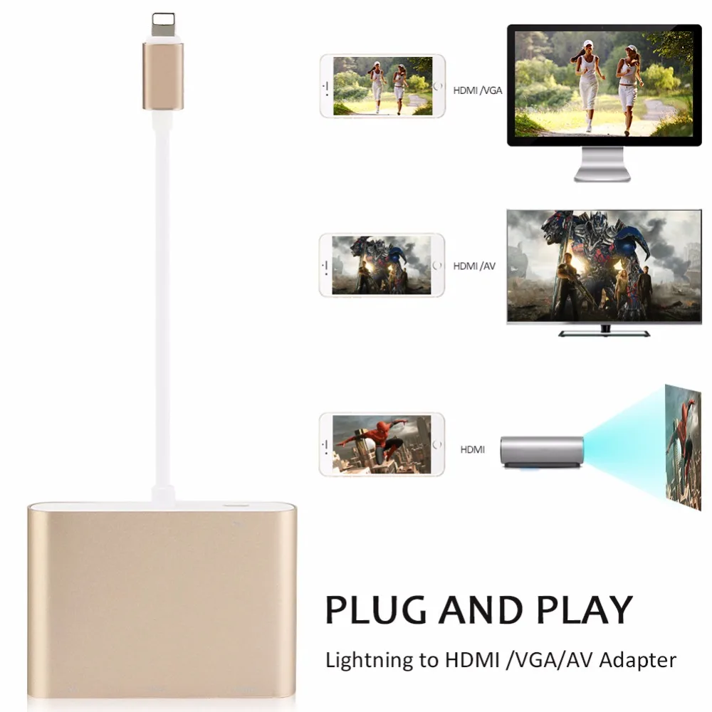 Vente Haute Qualité Date Pour La Foudre à Numérique AV Vidéo HDMI HDTV VGA AV Câble Adaptateur Pour iPhone 8 7 7 Plus 6 6 s Pour iPad Série Pas Cher En Ligne