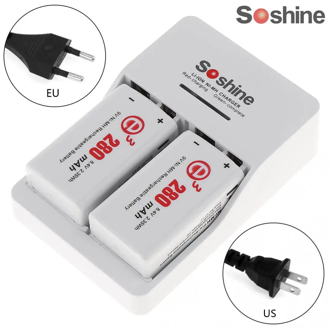 Spain Spain Search. Barcelona Barcelona. Vente Nouveau Soshine 2 pcs 9 v 6F22 280 mah Ni MH Rechargeable Batterie + 9 v Intelligent Ni MH Li ion Chargeur avec LED Indicateur Pas Cher En Ligne.