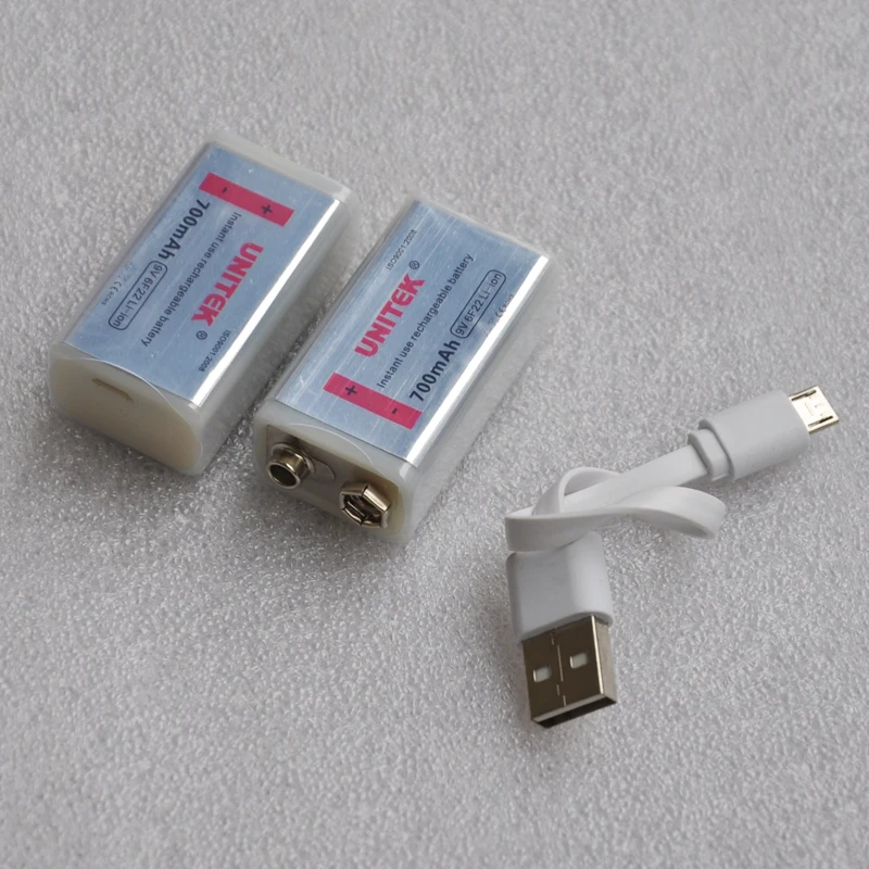 Achat 1 pièces 9 V batterie rechargeable 700 mAh 6F22 USB Prismatique lithium ion cellulaire pour microphone sans fil Guitare EQ détecteur de fumée multimètre Pas Cher Prix