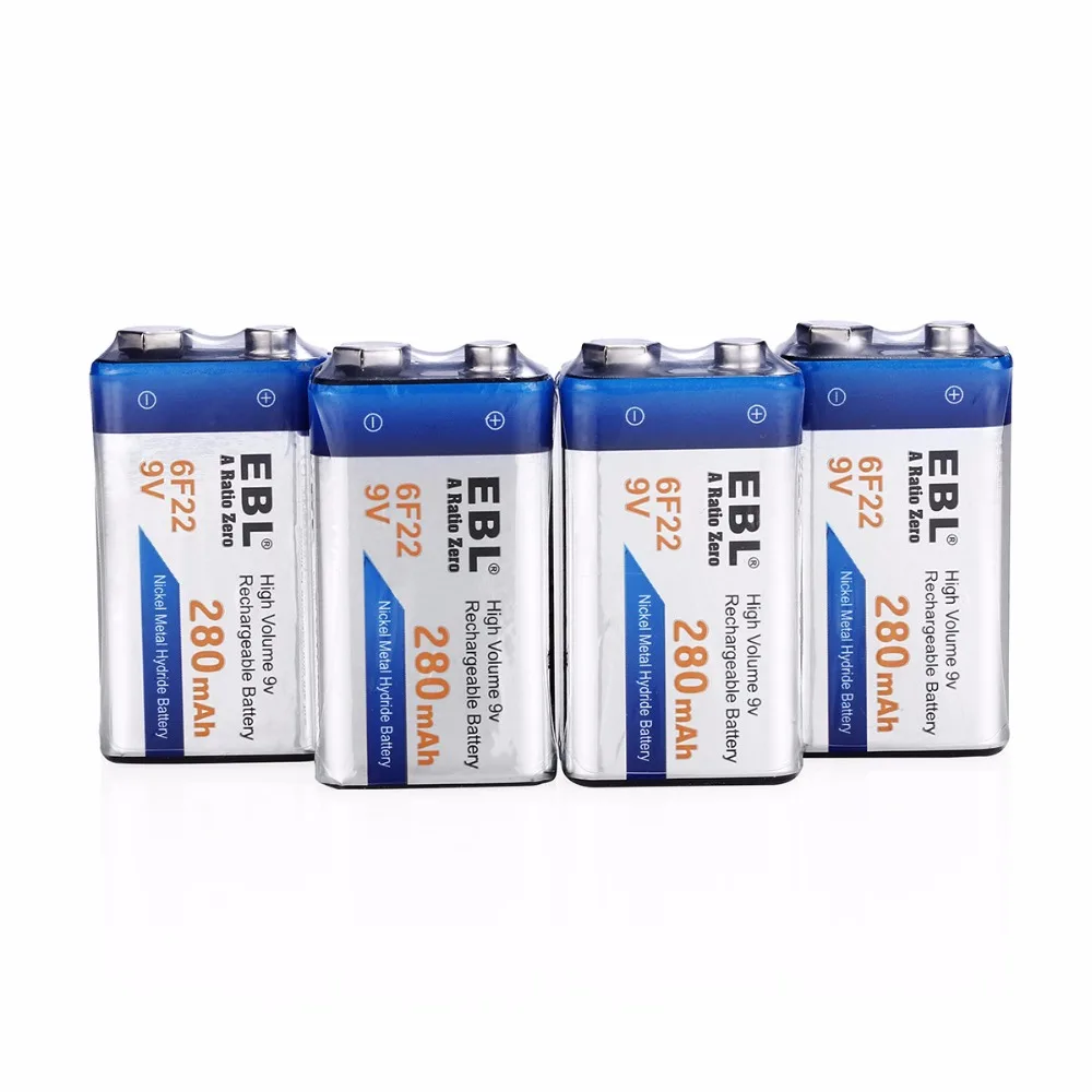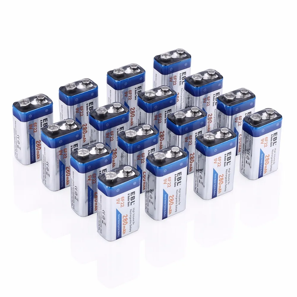 Acheter 16 pcs lot EBL 280 mAh 9 v 6F22 Rechargeable Batterie 9 Volt Ni MH Batteries de Remplacement Universel Livraison Gratuite Pas Cher Prix