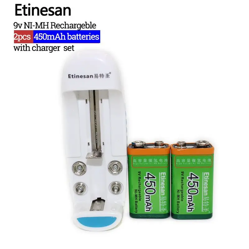 Acheter Meilleur 2 pièces 9 v 450 mAh Ni MH Rechargeable 9 Volts NiMH Batterie avec Universel 9 v aa aaa 18650 cr123a chargeur de batterie factory outlet Pas Cher Prix.