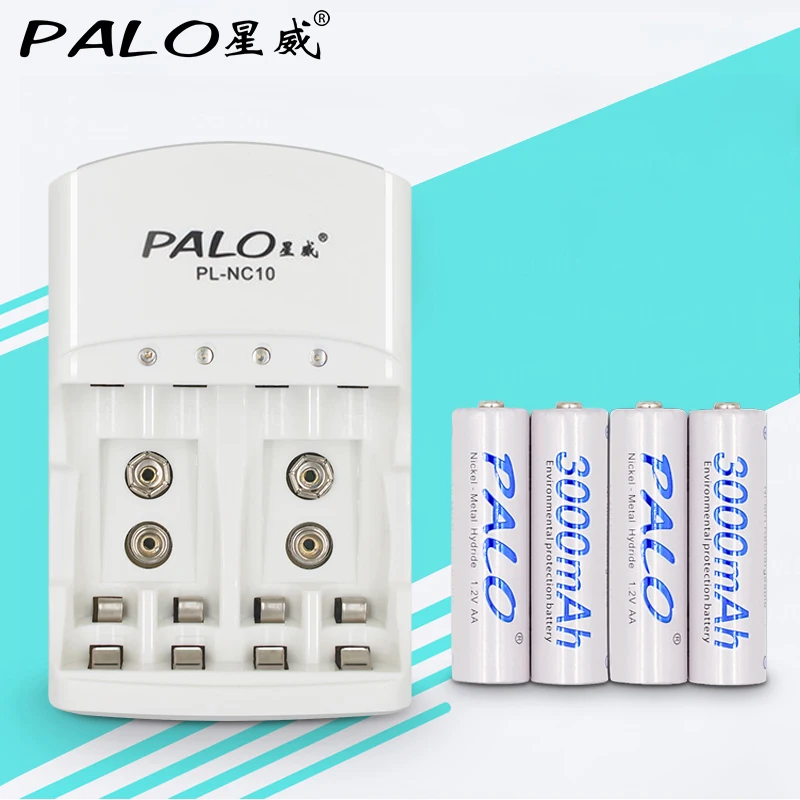 Acheter 4 slots 1.2 v aa aaa 9 v auto chargeur de batterie + 4 pièces aa nimh 3000 mah rechargeable batteries Pas Cher En Ligne