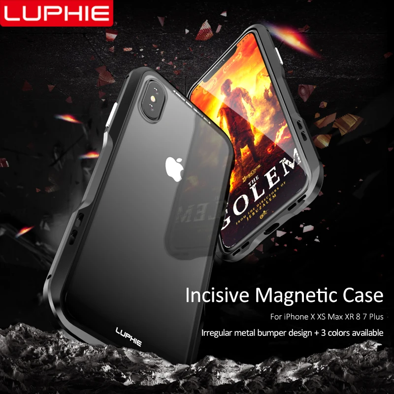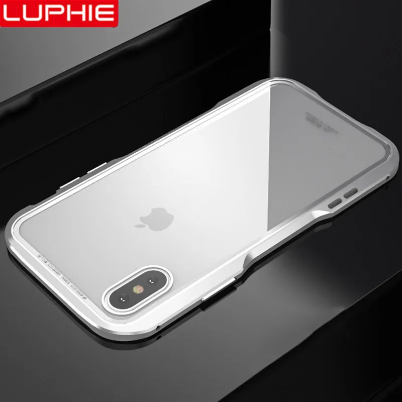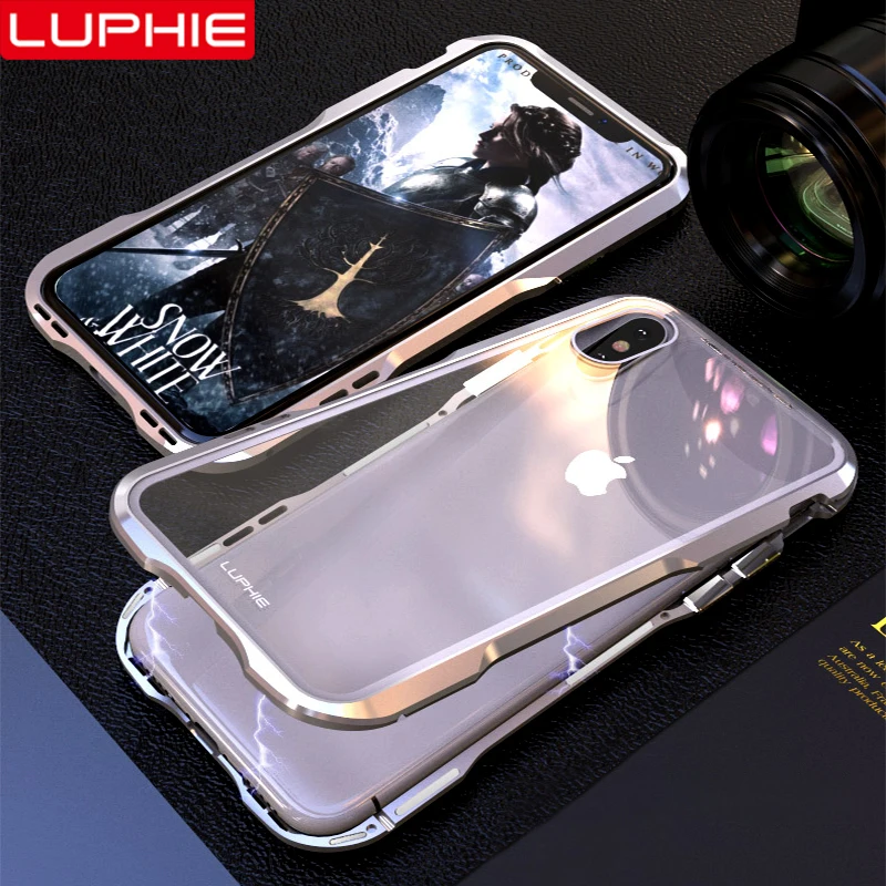 Achat Meilleur LUPHIE Magnétique étui pour iphone X XS Max XR 8 7 Plus Aimant Cas Clair En Verre revêtement arrière étui pour iphone 7 8 Plus X pare chocs métallique Pas Cher En Ligne.