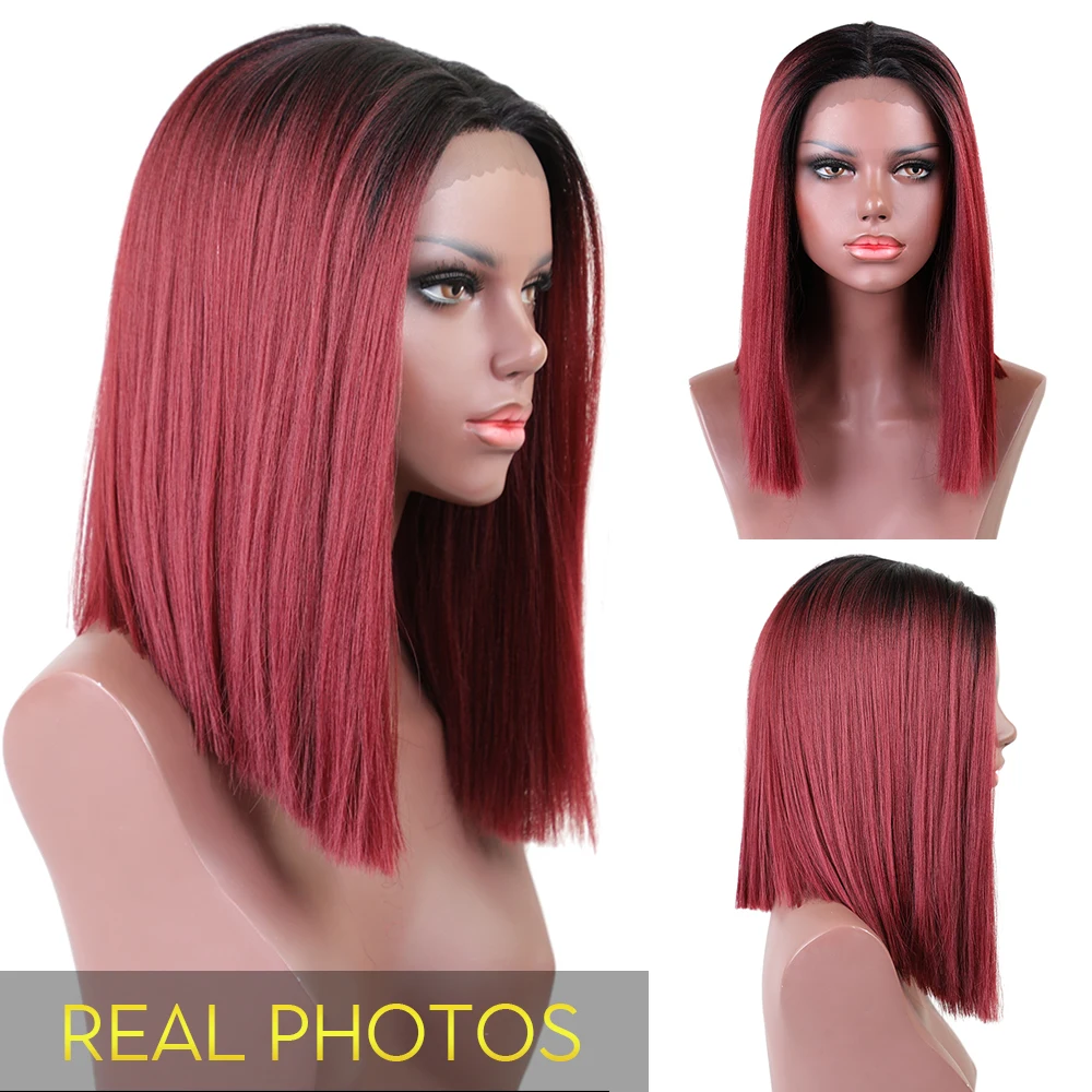 Acheter Meilleur Élément Droite Cheveux Synthétiques Avant de Lacet 13*4 T Partie Bob Perruque 14 \"Perruques pour Femmes Noires 7 couleurs Ombre Cheveux Choix Cosplay Perruque Pas Cher Prix.
