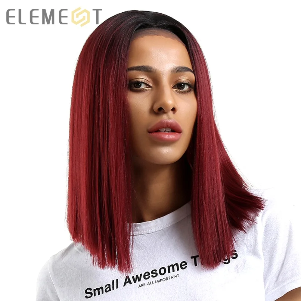 Vente Élément Droite Cheveux Synthétiques Avant de Lacet 13*4 T Partie Bob Perruque 14 \"Perruques pour Femmes Noires 7 couleurs Ombre Cheveux Choix Cosplay Perruque Pas Cher En Ligne