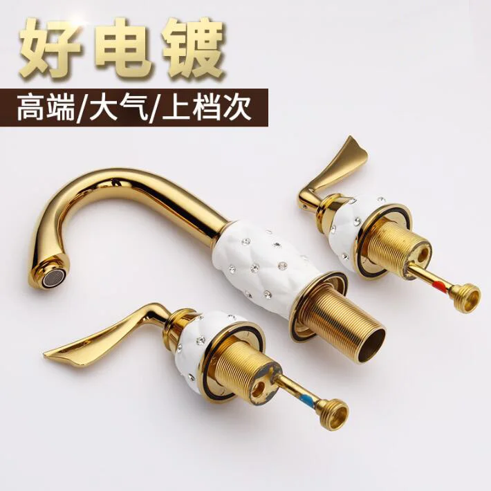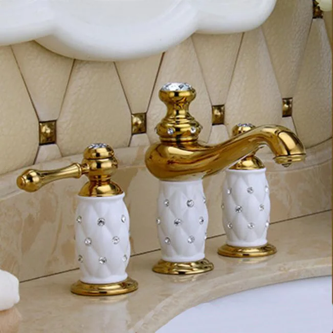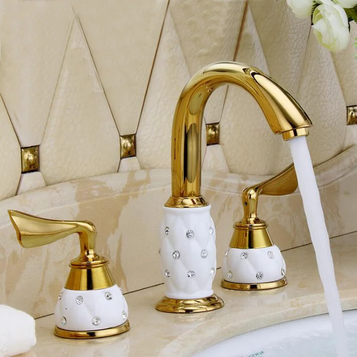 Vente Nouveautés de luxe bassin robinet 8 pouces eau du robinet en laiton céramique et diamant salle de bains robinet or répandue bassin lavabo Pas Cher Prix