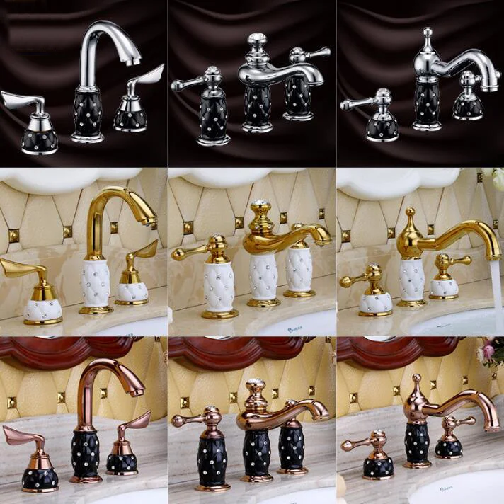 Acheter Meilleur Nouveautés de luxe bassin robinet 8 pouces eau du robinet en laiton céramique et diamant salle de bains robinet or répandue bassin lavabo Pas Cher Prix.