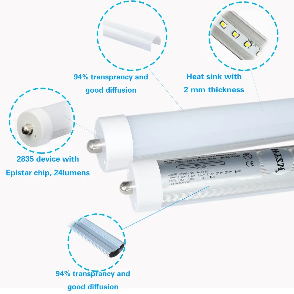 . Acheter 10 pcs 40 W 96 \"8ft T8 T12 LED Tube Lumière, 75 Watt Tube Fluorescent Remplacement 85 265 V Double Fin Power USA Livraison Pas Cher Prix.