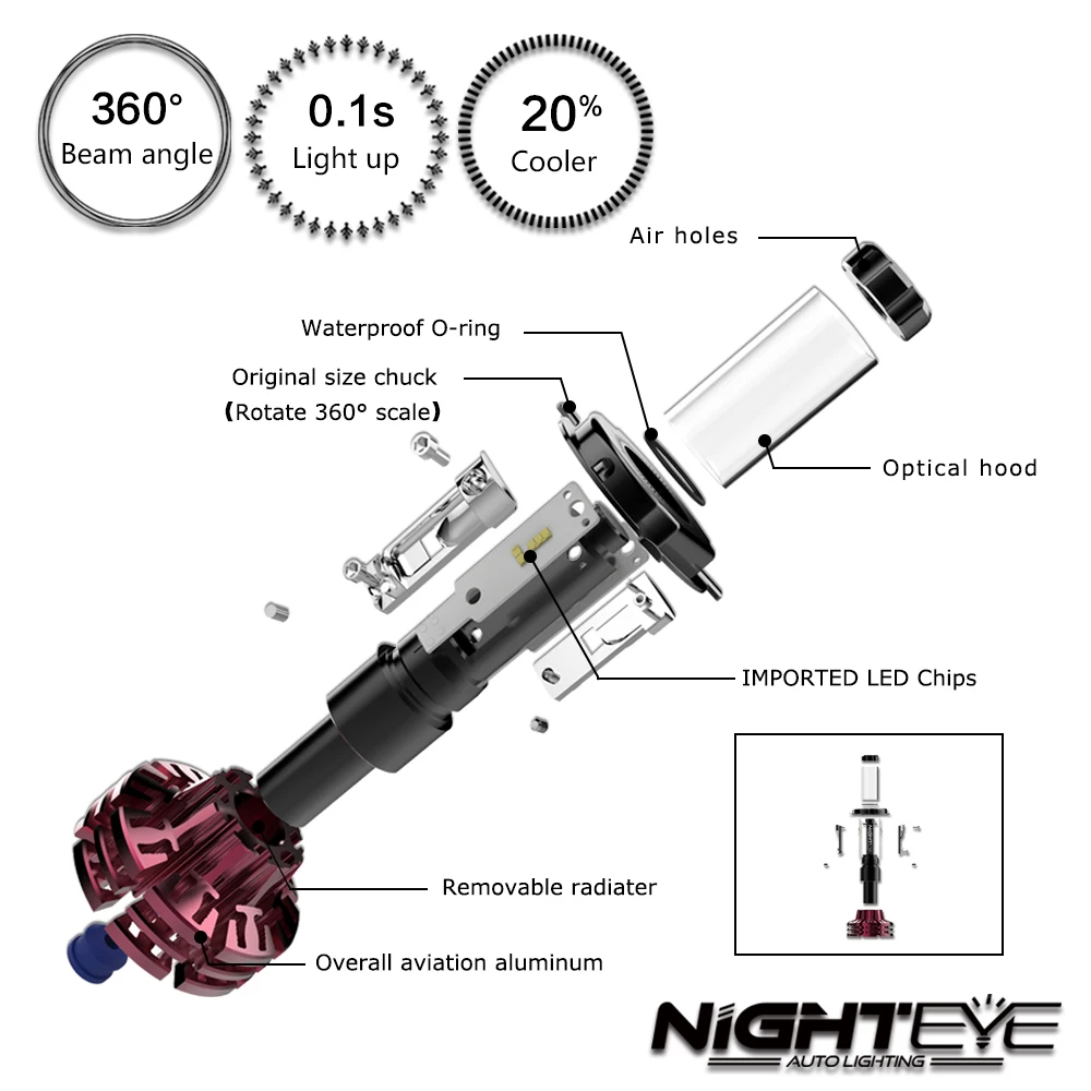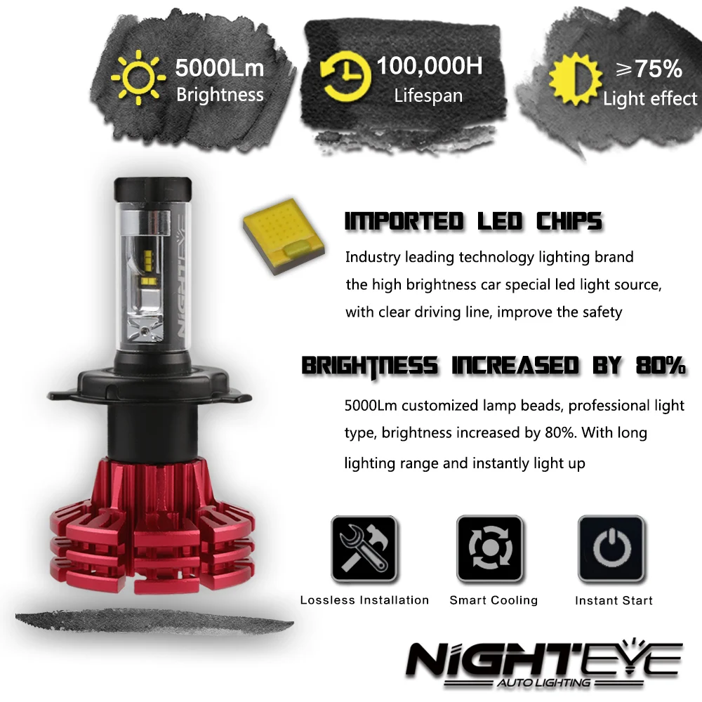 . Achat Nighteye Auto Éclairage H4 HB2 9003 Voiture LED Phares 60 W 10000LM Salut Croisement Phares Anti Brouillard Lampes Ampoules 3000 K 6500 K 8000 K D45 Pas Cher Prix.