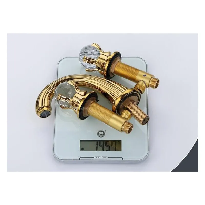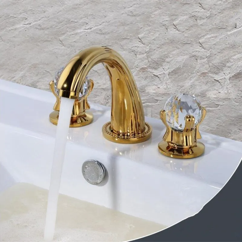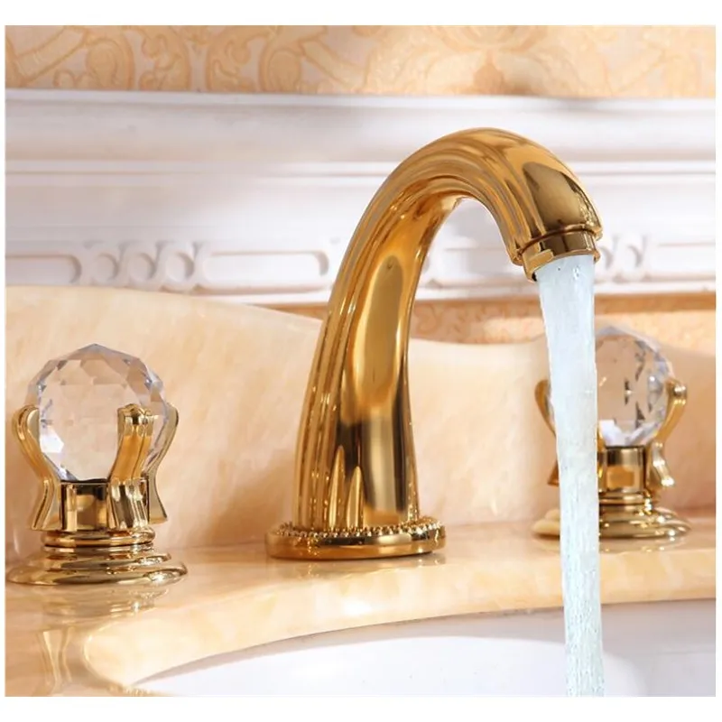 Acheter Meilleur Salle de bains de luxe robinet de lavabo de luxe cristal poignée généralisée 8 pouce trois trous bassin robinet évier robinet or fini Pas Cher En Ligne.