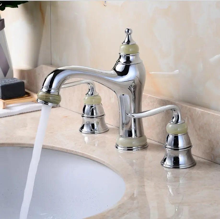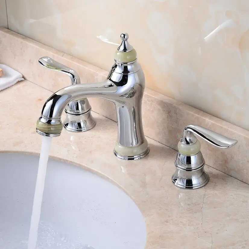 Achat Meilleur De luxe 8 pouce généralisée bassin robinet en laiton et jade salle de bains évier robinet chrome or or rose bassin mélangeur, grue robinet mélangeur Pas Cher Prix.