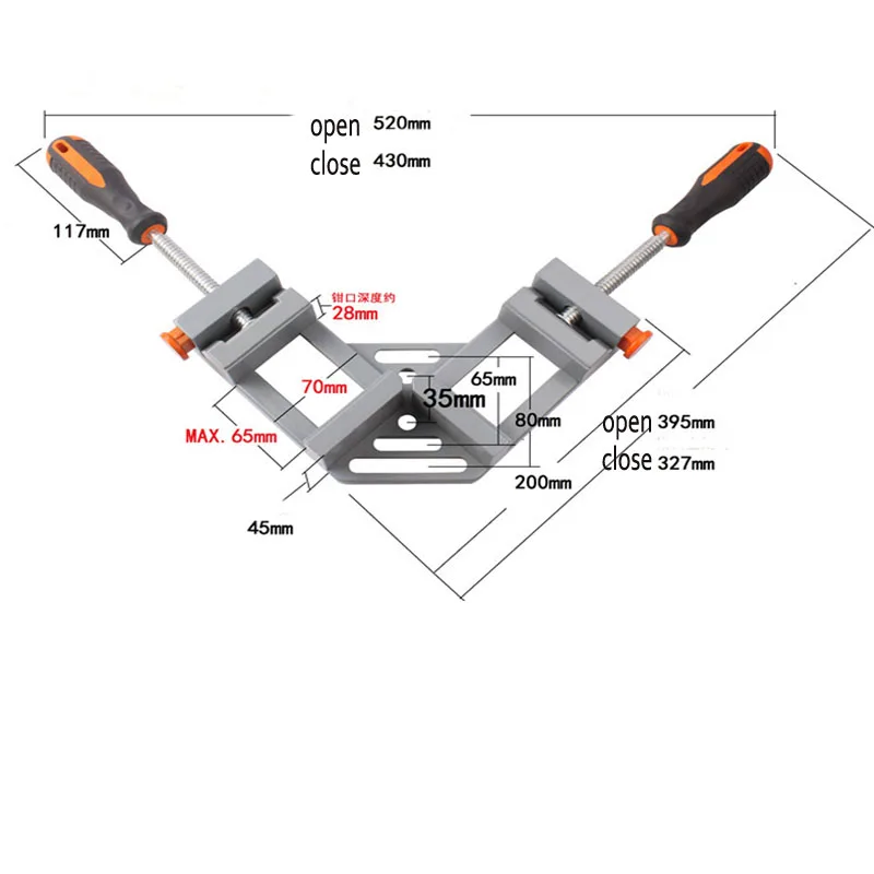 Vente Double Poignée 90 Degré Angle Droit Pince À Bois Coin Pince En Alliage D aluminium Du Matériel Lourd Gabarit Accessoires Max 65mm Pas Cher En Ligne