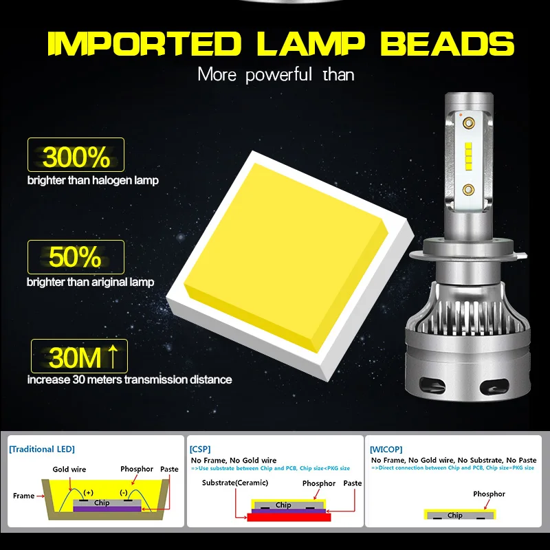 . Acheter Aslent H4 H7 H11 H1 9005 9006 9012 ampoules de phares led Salut Lo Faisceau CSP Puces 60 W 8000lm 6500 K voiture Auto Phare Brouillard Lumière DC12v Pas Cher Prix.