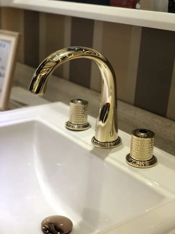 . Acheter TI GOLD PVD 8 pouce 3 Trous généralisée salle de bains Lavabo Évier robinet mitigeur pont monté De Luxe tap Ronde poignées NOUVEAU Pas Cher En Ligne.