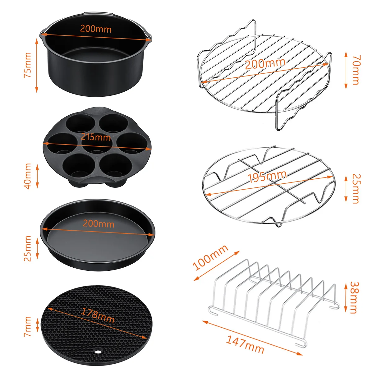 . Acheter Hot 7Pcs 8 Pouces Air accessoires friteuse Ensemble Puces cuisson pizza Pan Cuisine Outil 5.2 ~ 5.8Qt Pas Cher Prix.
