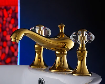 Acheter Meilleur Salle de bains de luxe bassin robinet d or 8 pouce, en laiton avec Diamant cristal robinet Double Poignée Encastré chaude et froide du robinet D or Pas Cher En Ligne.