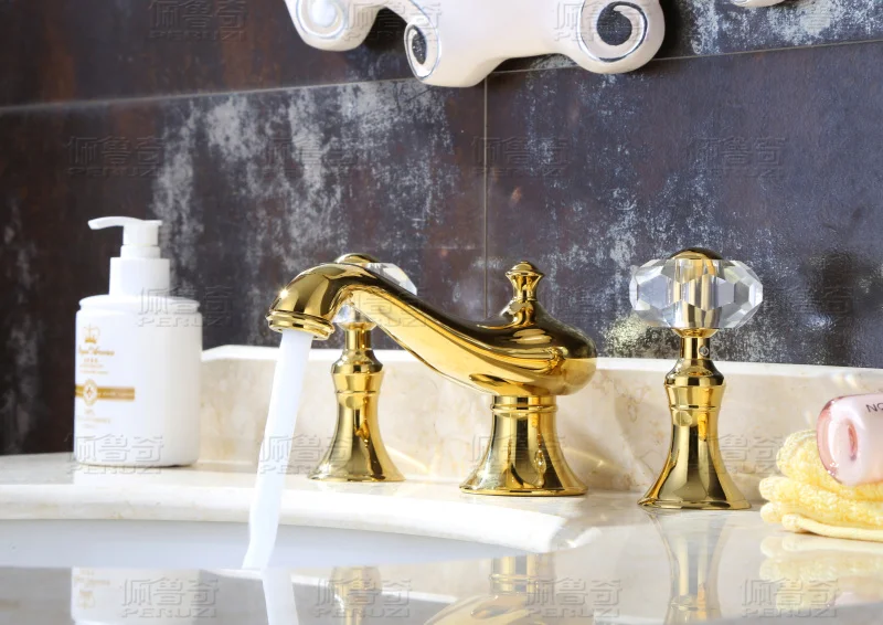 Acheter Salle de bains de luxe bassin robinet d or 8 pouce, en laiton avec Diamant cristal robinet Double Poignée Encastré chaude et froide du robinet D or Pas Cher En Ligne