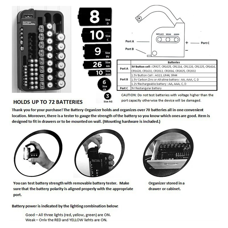Vente Meilleur Support de batterie Cas 9 V AAA C D AA Batterie En Plastique Boîte De Rangement Piles Organisateur CR AG Pile Bouton avec testeur Directe Boîte Pas Cher En Ligne.
