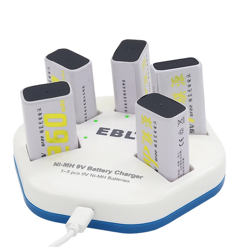 Achat EBL 5 slots USB chargeur de batterie pour 9 V NI MH Batterie qualité supérieure Individuels Intelligent chargeur rapide pour 9 V batteries DC 504 Pas Cher En Ligne