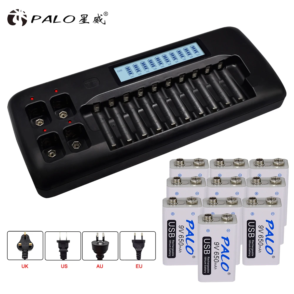 Acheter Meilleur PALO 9 V Chargeur chargeur de batterie pour 9 v piles 1.2 v aa aaa ni mh ni cd batterie rechargeable avec 10 pièces 9 V usb batterie batteria Pas Cher Prix.