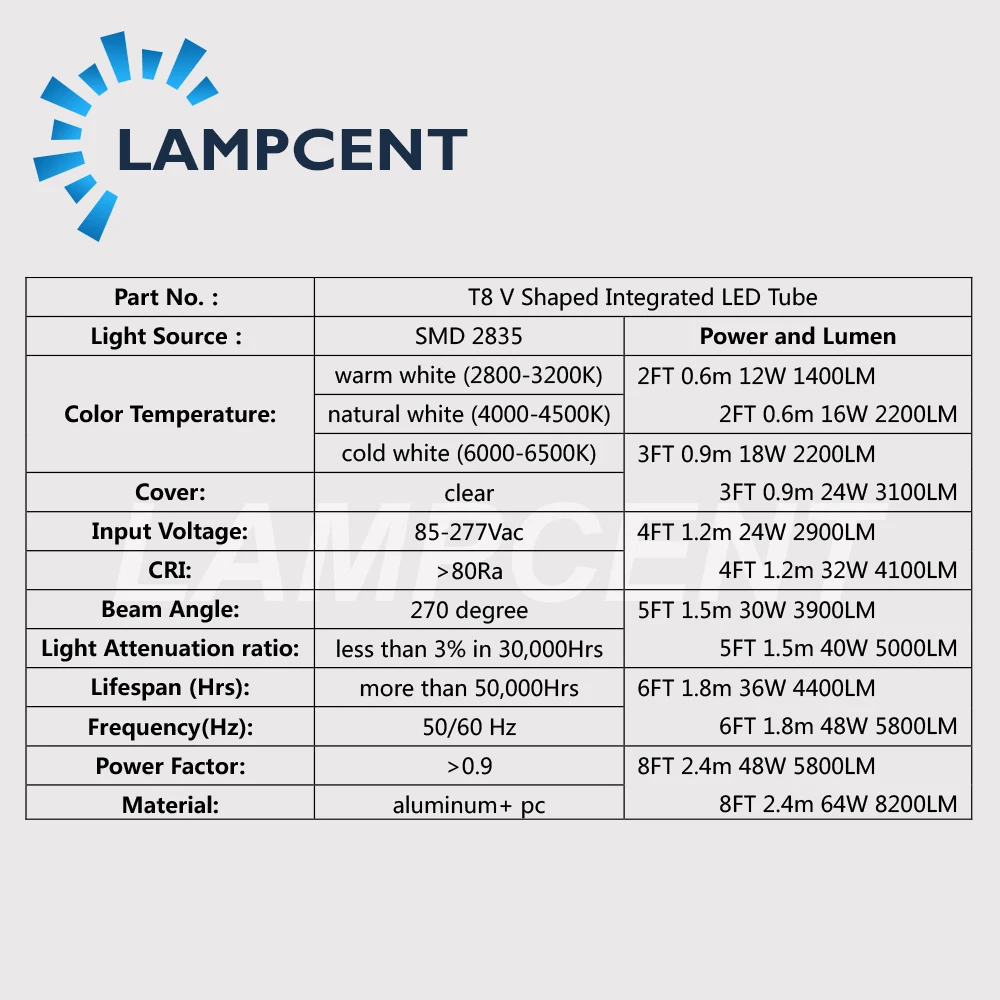 Achat Meilleur 2 20 Pack V En Forme de LED Tube Lumières 2ft 3ft 4ft 5ft 6ft 8ft 270 Angle Ampoule t8 Intégré Luminaire Liable Bar Lampe Super Lumineux Pas Cher Prix.