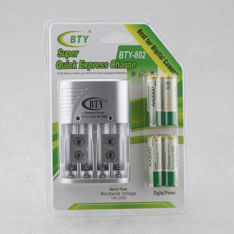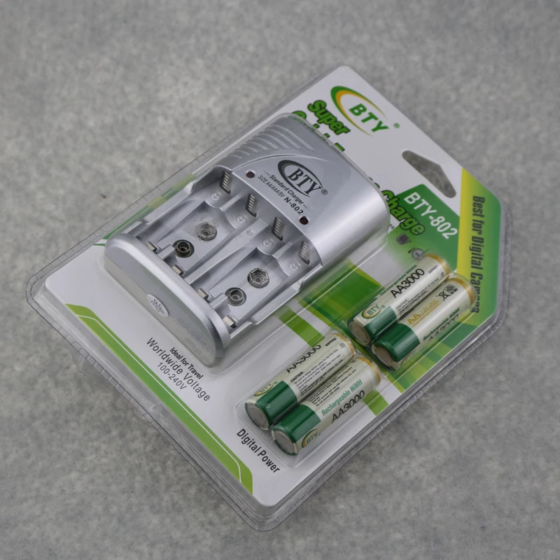 Achat 3 Ensembles Rechargeable Ni MH AA Batterie Taille 5 Batteries (4 pcs 3000 mAh AA Batterie + 1 pc BTY 802 Chargeur Costume Pour AA AAA 9 V Batterie) Pas Cher En Ligne