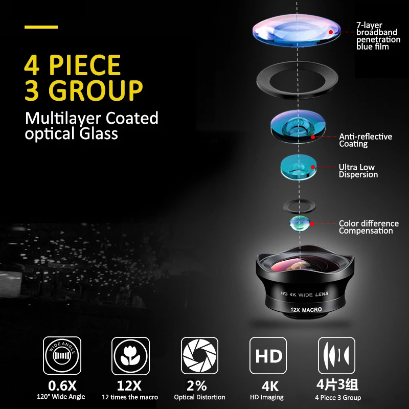 . Achat AERB 2in1 Téléphone Poissons Lentille Pour iPhone 5 5 s Se 6 6 s Large Angle 4 K HD Lentille + 12x Caméra Lentille Couvre Pour iPhone 7 8 Plus Yeux Adaptateur Pas Cher En Ligne.