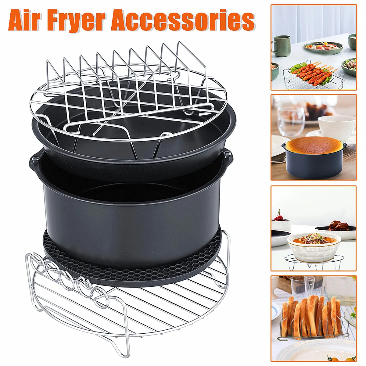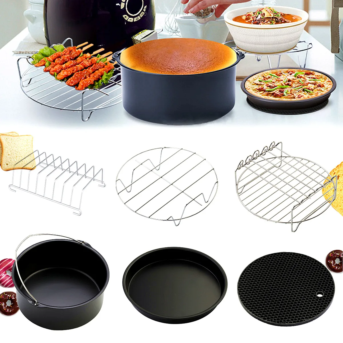. Achat Cuisine 6 PCS Air Friteuse Accessoires Gâteau Pan Pizza Cuisson Baril Barbecue Rack 6 en 1 Cuisine Cuisine Outils Kit Ustensiles 8 Pouce Pas Cher Prix.