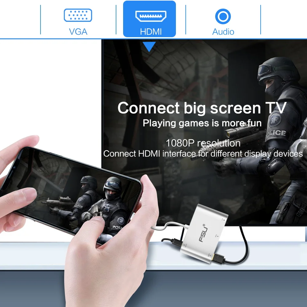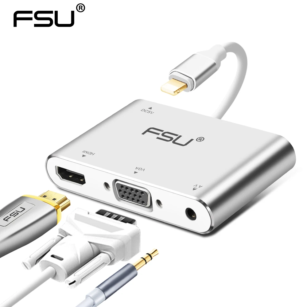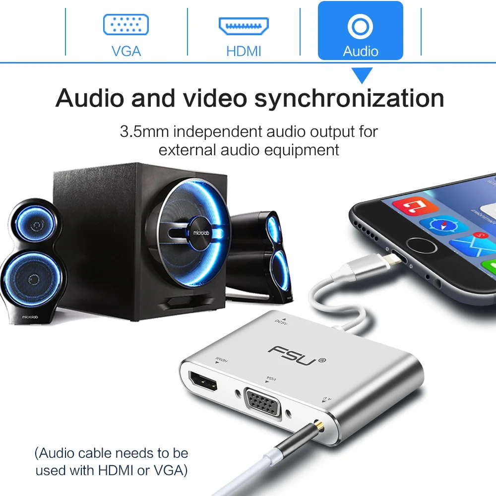 Vente FSU Date Pour La Foudre à HDMI VGA 3.5 Jack Audio câble adaptateur tv Pour iPhone X iPhone 8 7 7 Plus 6 6 S 5 5S Pour iPad Série Pas Cher En Ligne